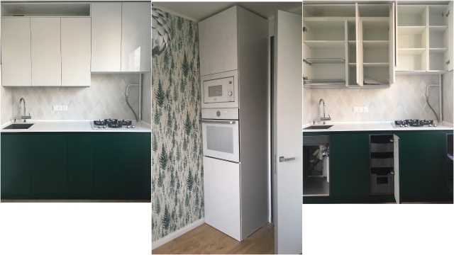Заготовки по проекту у меня были. Но сколько полезных советов дала Вероника! Мы с ней творили с энтузиазмом. Выбирали материал фасадов, цвет, фурнитуру, технику. Учитывали, конечно, мои финансовые возможности. Вероника выслушивала мои варианты и тактично направляла поиск. В результате всё было сделано.