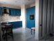 Небесно-голубая кухня с фрезеровкой и диагональными линиями