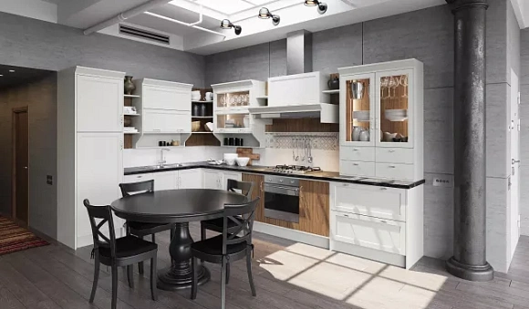 Широкий ассортимент. Подобрать белый кухонный гарнитур можно для любого помещения, так как производители предлагают версии разной формы.