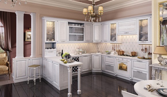Компания «Кухонный двор» выпускает качественные кухонные гарнитуры разных расцветок. Если вас интересует кухня в белом цвете, загляните в каталоге кухонь салона. Здесь представлены модели в разных стилях, а также отзывы клиентов.