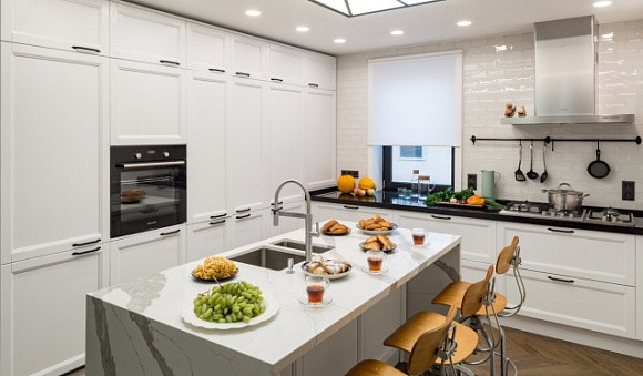Какие материалы используются для производства кухни в белых тонах?