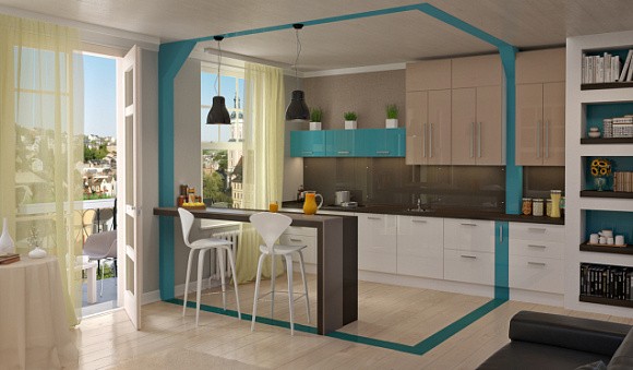 Планировка кухонного гарнитура белого цвета