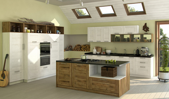 Гарнитуры в стиле кантри идеально подходят для дач и загородных домов. Фасады таких комплектов декорируют решетками, резными узорами, рамками и флористическими рисунками. Чтобы кухонная мебель в сельском стиле гармонично вписалась в пространство, не забывайте о его оформлении. Полотенца, прихватки и другой текстиль должны быть изготовлены из натуральных тканей – льна или хлопка. Концепции направления кантри противоречат пластиковые изделия, поэтому от них следует отказаться.