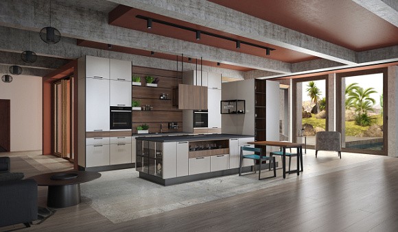 При выборе кухни в бежевом цвете, обратите внимание на ее дизайн. К одним из популярных относятся скандинавские модели кухни. Они отличаются простыми формами и строгими линиями. Фасады таких комплектов обычно гладкие или декорированные лаконичными узорами, стеклянными вставками. Версии сканди выбирают любители минимализма и комфорта.