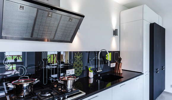 Черный цвет многим может показаться мрачным. Но если его использовать дозированно, можно создать по-настоящему эффектную кухню. Помещение в черных тонах выглядит современно и респектабельно. А еще этому цвету часто отдают предпочтение обеспеченные люди.