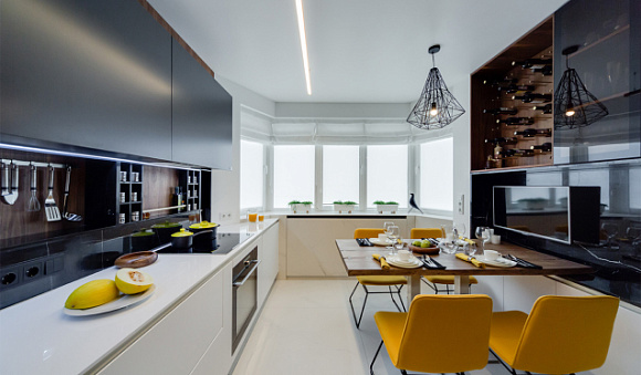 Важно понимать, что для темных кухонь нужно просторное помещение, в котором много света или есть большие окна.