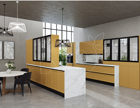 На сайте бренда «Кухонный двор» вы можете заказать гарнитур любой формы: линейный, угловой, с островом, полуостровом или барной стойкой.