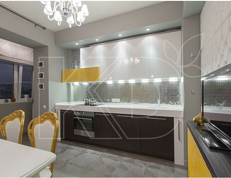 Дизайн кухни в бело-желтом цвете