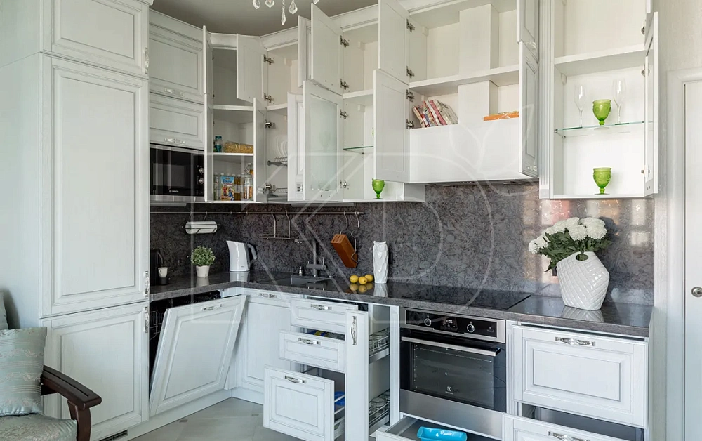 • Кроме того, шпонированные фасады демонстрируют высокую устойчивость к внешним факторам и легко поддаются реставрации. Небольшие царапины можно без труда зашлифовать, а крупные дефекты скрыть с помощью шпоновой заплатки, что позволит кухне сохранить безупречный внешний вид на протяжении долгого времени.
