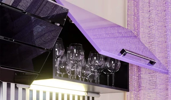 За изготовлением кухни по индивидуальным размерам обращайтесь к проверенному производителю – на мебельную фабрику «Кухонный Двор». Здесь можно найти самые лучшие варианты кухонных гарнитуров фиолетового цвета, выполненные из качественных материалов и с применением прочной фурнитуры.