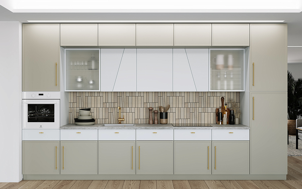 Если вы выбираете изготовление кухни на заказ, внимательно отнеситесь к выбору фурнитуры. Она тоже станет частью пространства, подчеркнет красоту даже недорого ремонта. Для плоских однотонных фасадов можно подобрать эффектные ручки, которые будут смотреться как гармоничный элемент декора.