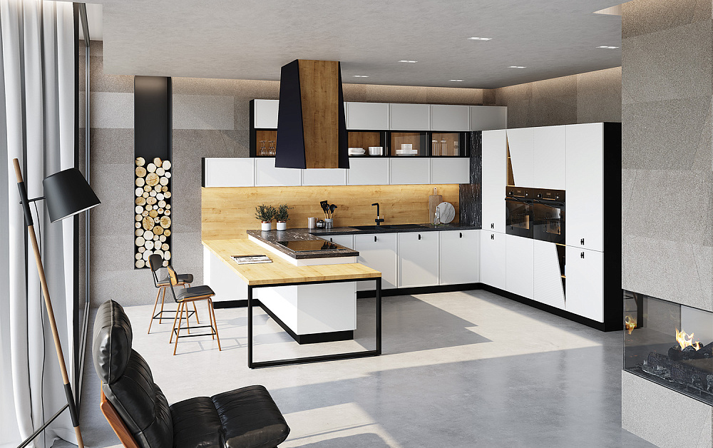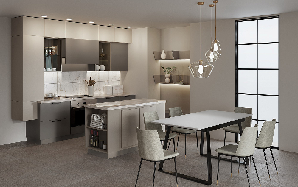 Столешница, заставленная разнообразной бытовой техникой, смотрится довольно неряшливо, особенно в небольших пространствах. Поэтому кухонная мебель со встроенной техникой выглядит гораздо привлекательнее. Спрятать за фасадами можно не только крупные предметы – вытяжку, духовой шкаф, посудомоечную машину, холодильник. Более мелкую технику, например, кофемашину, мультиварку и тостер тоже можно скрыть от глаз. Благодаря этому рабочая поверхность всегда будет выглядеть свободной и аккуратной.