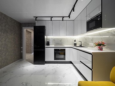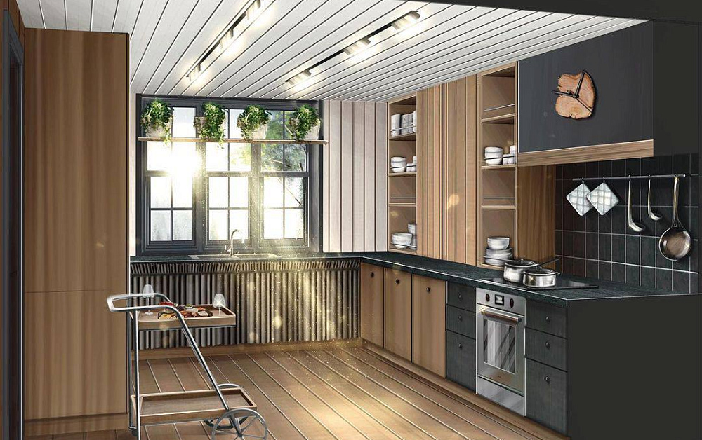Если стены кухни не позволяют установить стандартный комплект мебели, рекомендуем заказать кухню по индивидуальным размерам. В этом случае дизайн-проект будет реализован с учетом особенностей помещения. Например, ниши будут использованы для установки полок и бытовой техники.
