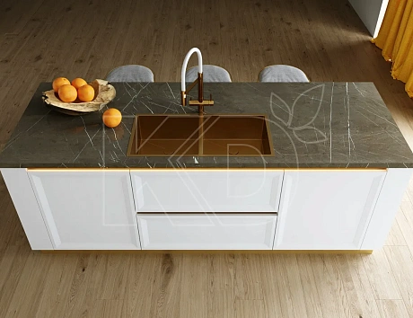 Такие изделия чаще создают на заказ из мрамора, оникса или гранита. Они красивые, прочные и безопасные. У моек из камня есть и недостатки. Они дорогие, сложные в уходе из-за пористой структуры и очень тяжелые – для установки нужен стол с дополнительными опорами.