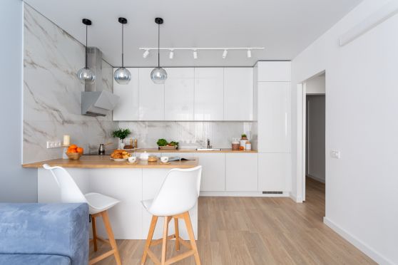 За счет стойки и барных стульев помещение станет более просторным и стильным.