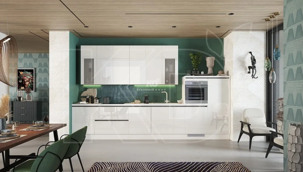 В модерне часто применяются современные материалы – закаленное стекло, хромированный металл и высокопрочный пластик. Гарнитуры в стиле модерн оснащаются разнообразными системами для хранения и организации пространства на кухне.