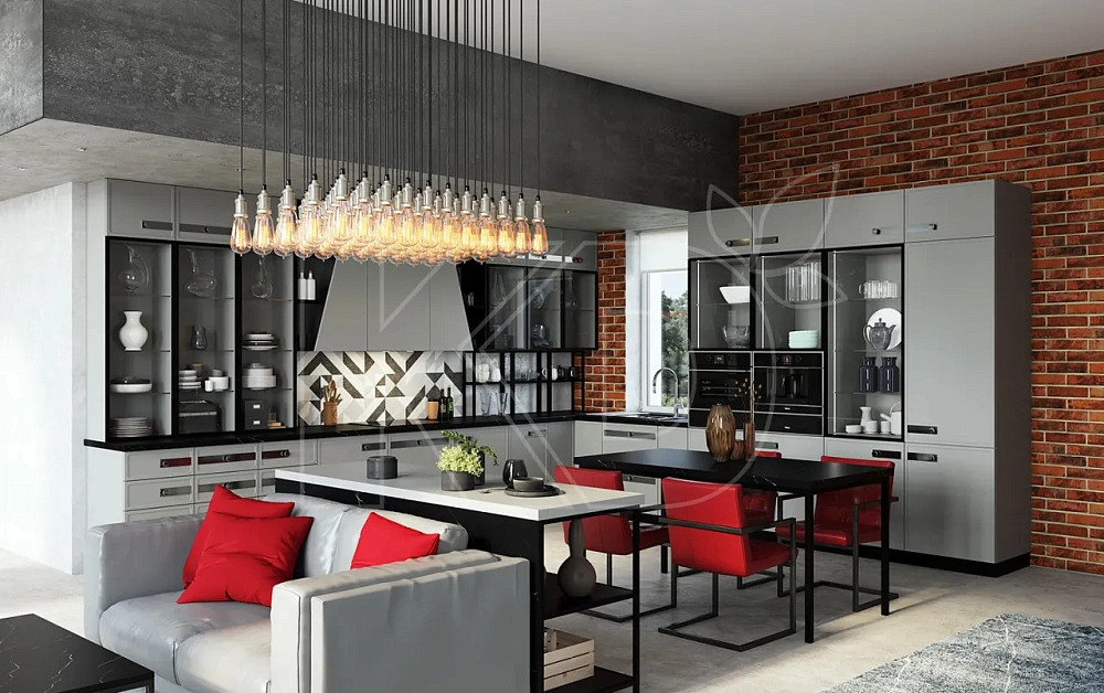 • Открытые коммуникации. Трубы, вытяжка и другие элементы становятся гармоничной частью интерьера, поэтому не приходится думать об их маскировке.