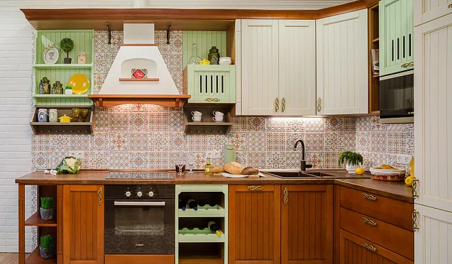 Иногда кухни на заказ от производителя делают из монолитного и прочного древесного массива. Профессионалы советуют остановить свой выбор на ясене, буке или дубе, но стоимость такой мебели высока. Сэкономить получится на сосновом массиве, но из-за мягкости этого материала с таким гарнитуром нужно бережно обращаться. Размокание, плесень и древесные вредители не испортят вашу кухню, так как фасады будут обработаны специальными средствами.