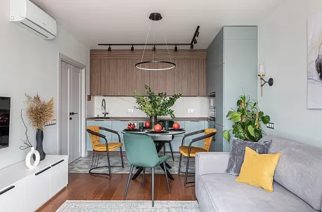 - Комната становится визуально просторнее. Даже небольшие квартиры кажутся больше и воздушнее, когда кухня и гостиная объединены.