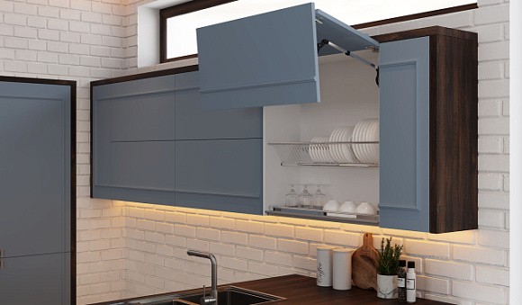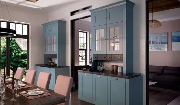 • Голубая кухня дарит покой. Этот цвет помогает расширить помещение.