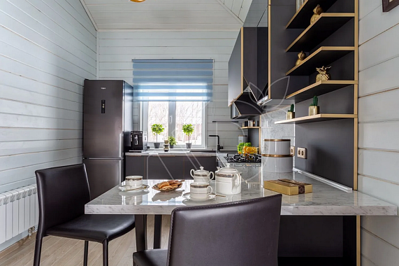 - Неоклассика. Это еще один пример того, как выглядит современный дизайн кухни, из которой убирается привычная для классики монументальность и роскошь. Упор в данном стилистическом решении делается на практичность и удобство. Мебель адаптируется под современные материалы, что позволяет сэкономить бюджет.