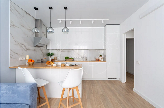 - Скандинавский стиль, для которого свойственны светлые поверхности, простая отделка, нейтральность фона. Мебель смотрится сдержанно, яркие акценты расставляются при помощи предметов декора. Светлая мебель особенно хороша для компактных кухонь с окнами, выходящими на северную сторону. Она не перегружает помещение.