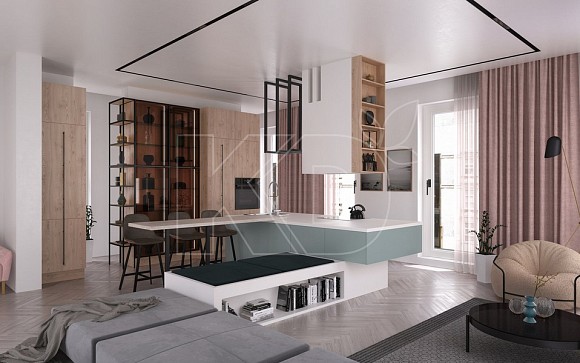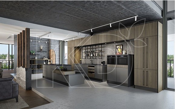 Владельцам больших, объединенных с гостиной кухонь или квартир-студий подойдут кухни П-образной формы, а также модели с полуостровом или гарнитуры с барной стойкой. Такая кухня обладает теми же достоинствами, что и угловой вариант, и при этом за счет дополнительной третьей стороны (полуострова или барной стойки) естественным образом обозначает границы, отделяя жилую зону от кухонной.