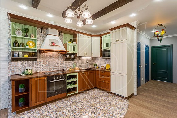 Если окна квартиры смотрят на север, и в кухне недостаточно солнечного света, лучше выбрать жизнерадостный теплый оттенок: желтый, травянисто-зеленый, оранжевый. Для квартир с окнами на юг, напротив, желательно подобрать мебель с фасадами в холодных тонах: синию, салатовую, мятную. Благодаря такой палитре на кухне будет царить атмосфера приятной прохлады даже в самый жаркий солнечный день.