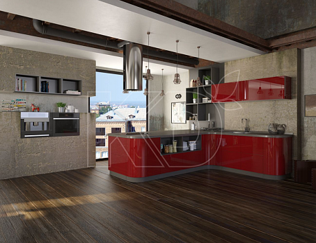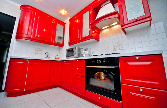 Яркие кухни выбирают позитивные, активные молодые люди. Купить яркие угловые кухни хороший вариант для большого помещения.