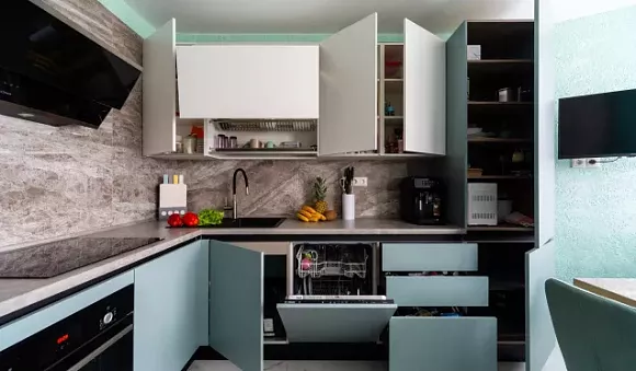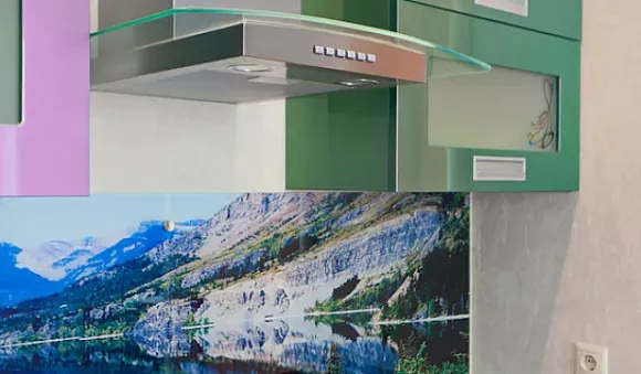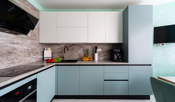Например, монохромный кухонный гарнитур зеленого цвета будет уместен в компактных комнатах, где излишнее дробление вызовет визуальное утомление. Чтобы однотонные поверхности не смотрелись скучно, их нередко дополняют вставками из стекла.