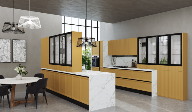 Желтый кухонный гарнитур - Использование акцентов