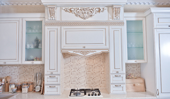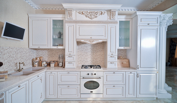Декорируя кухню в классическом стиле, учтите, что тут возможно использование золотой бытовой техники и сантехники.
