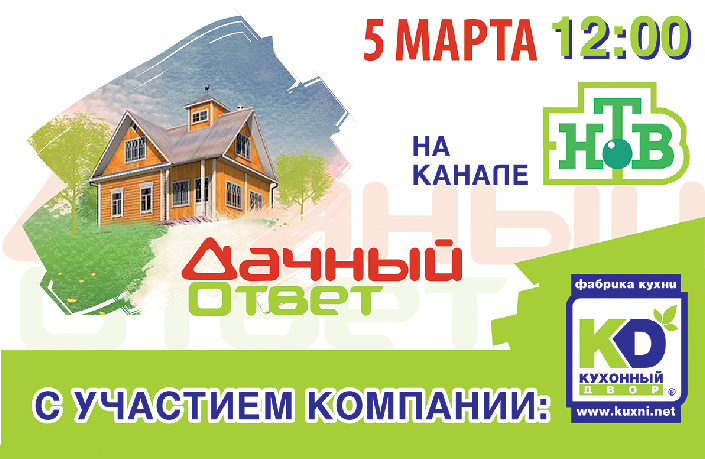 Успели соскучиться по телепроектам, где показывают по-настоящему красивую мебель? Больше скучать не придётся, ведь 5 марта в 12:00 на НТВ стартует новый сезон «Дачного Ответа». И главной звездой первого весеннего выпуска станет абсолютно новая кухня от бренда «Кухонный Двор»!