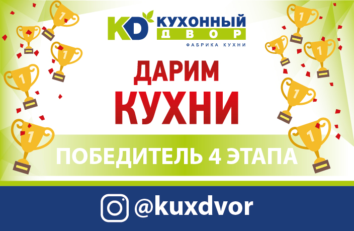 Завершился четвертый этап акции «Дарим Кухни»! На этой неделе скидка на мебель в размере 100 000 рублей досталась Савченко Ольге!