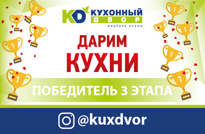 Завершился третий этап акции «Дарим Кухни»! На этой неделе скидка на мебель в размере 100 000 рублей досталась Богатыреву Денису!